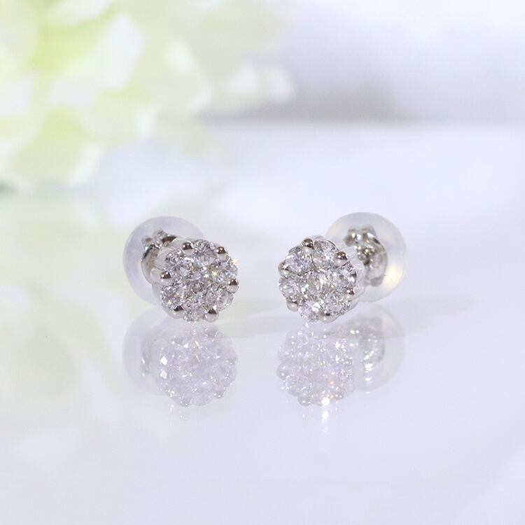 プラチナ 0.20ct フラワーデザインダイヤモンドピアス