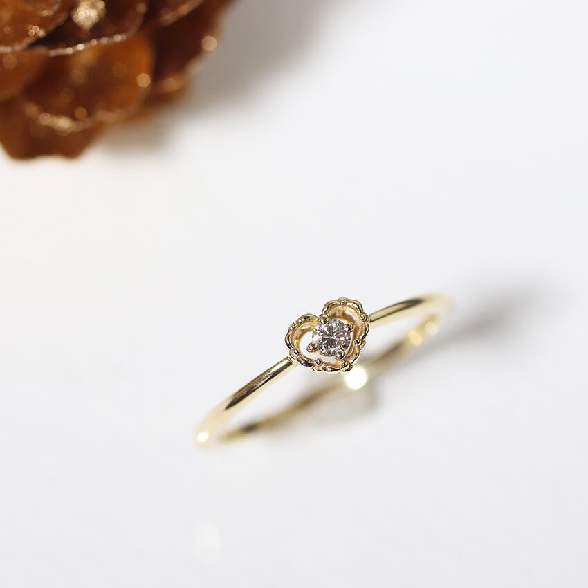 定番・ポピュラーなモチーフのハートを一粒ダイヤモンドで可愛らしく表現した こちらのリング❤️