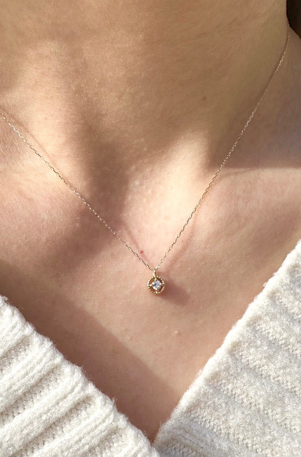 K10 ミル一粒ダイヤモンド 0.05ct ペンダント