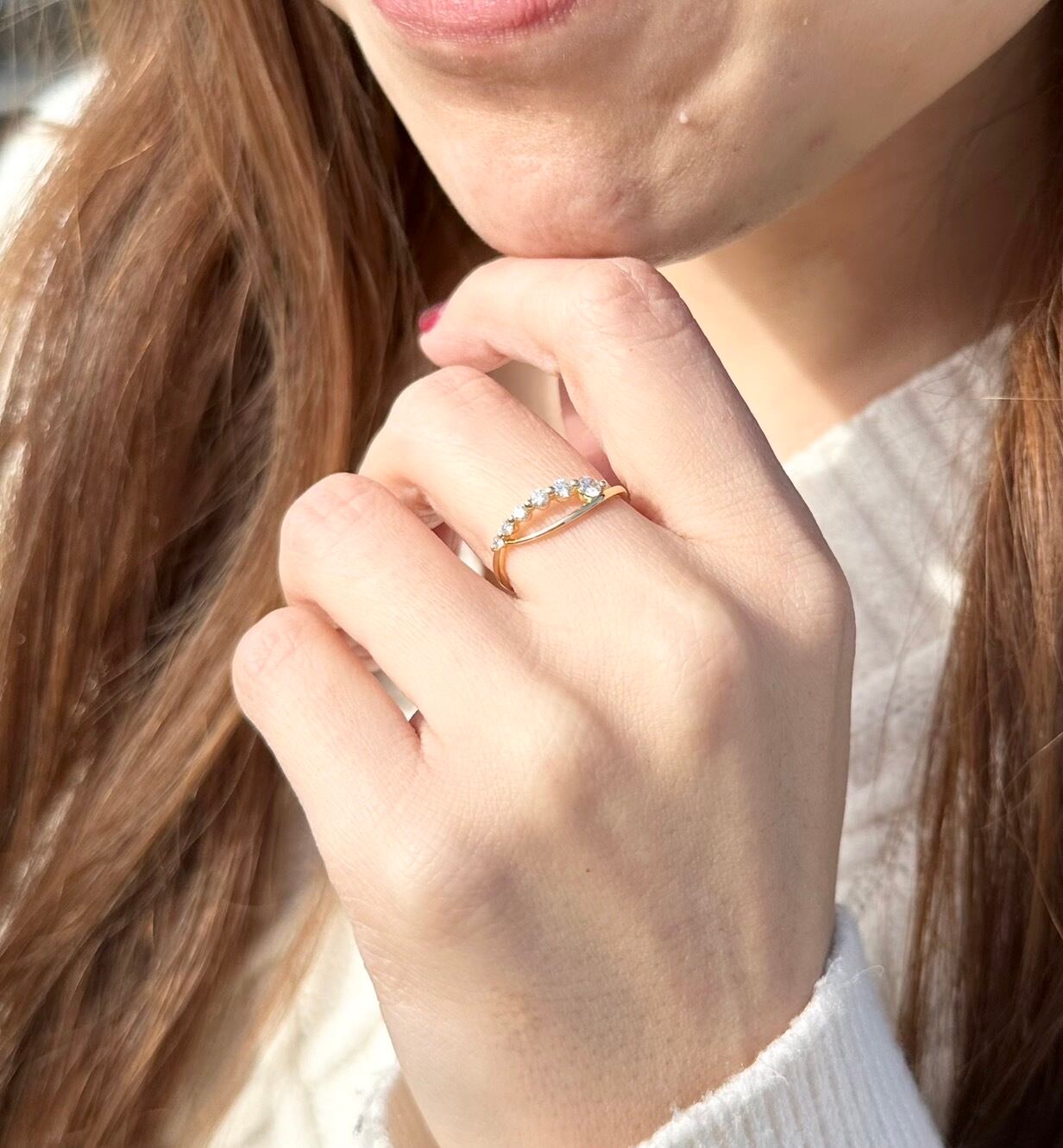 重ね付け風に二層になった上ラインには6石のダイヤモンドが輝きます