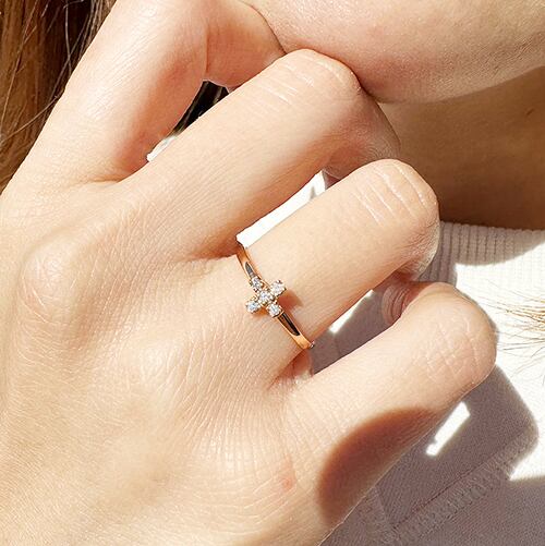 K18PG クロス ダイヤモンドリング
