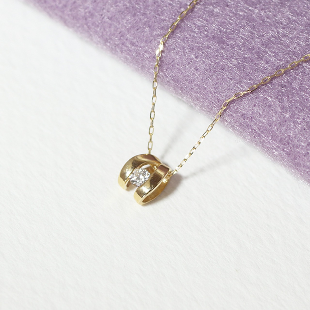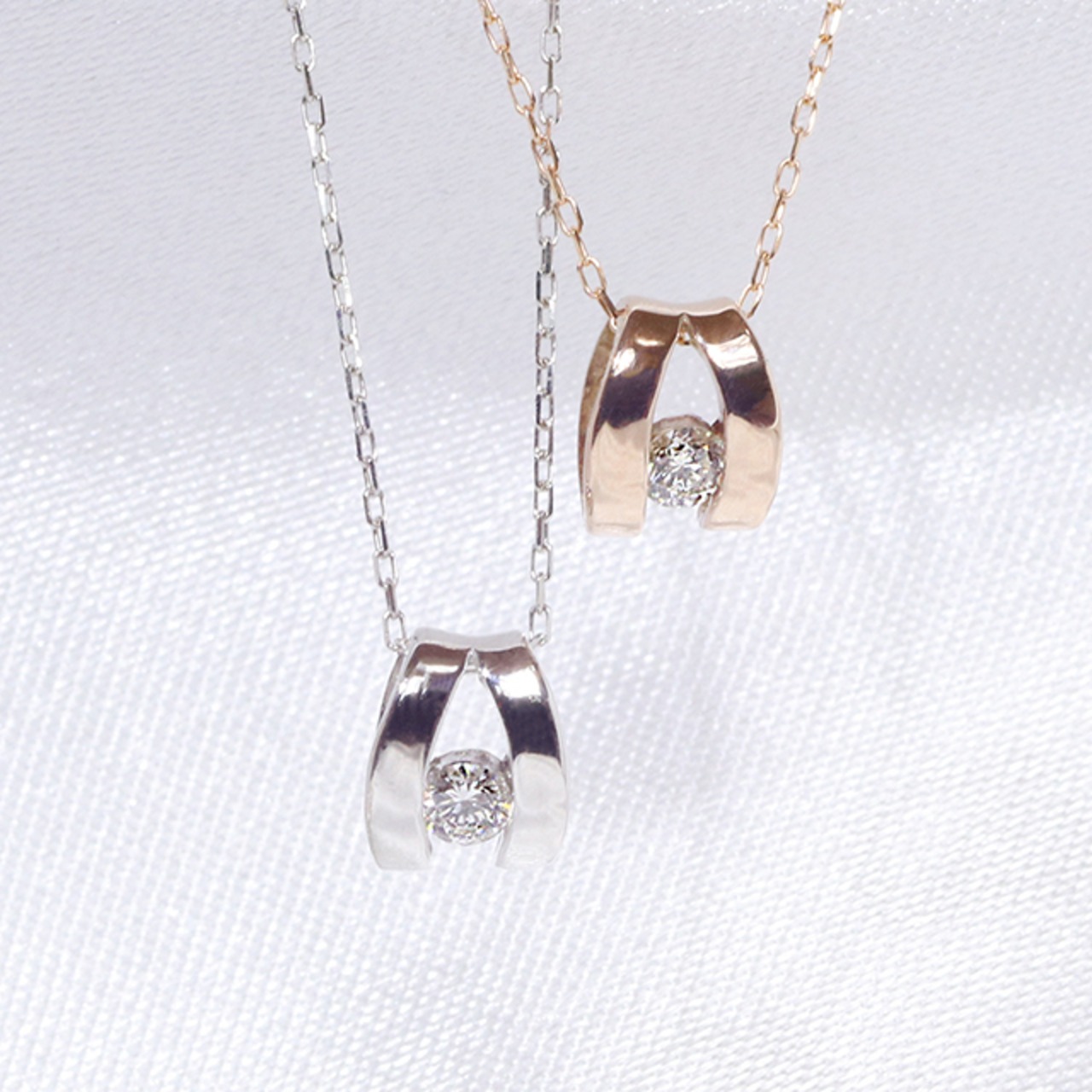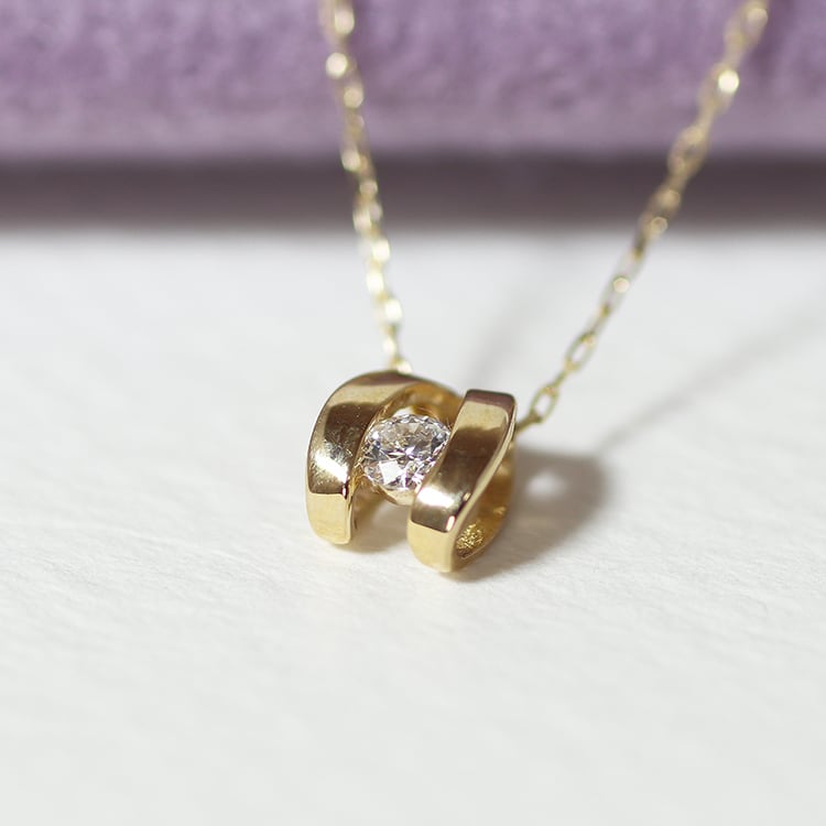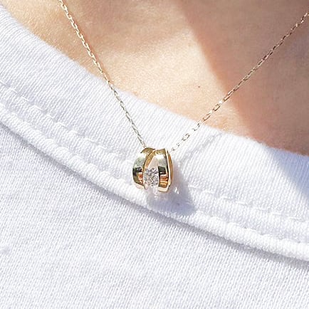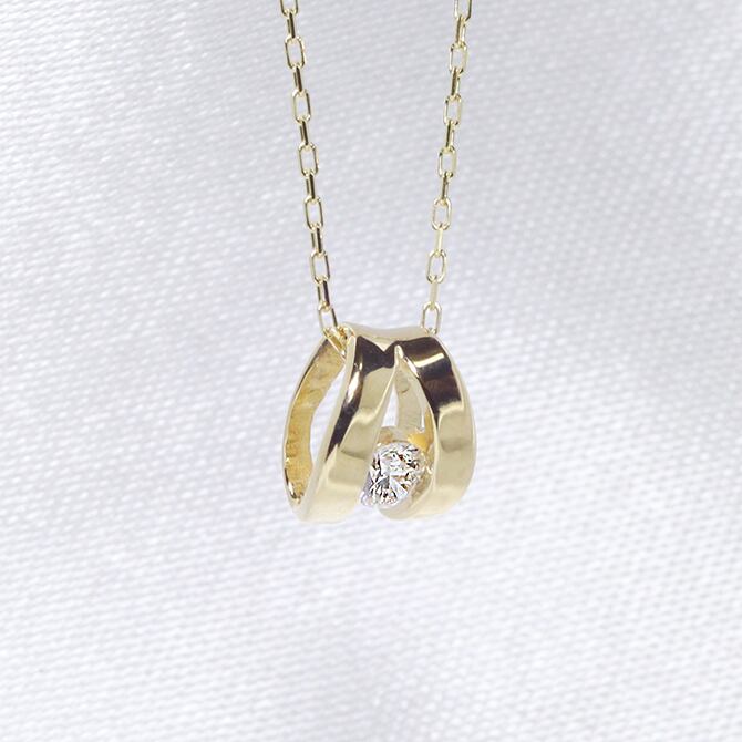 職人の技が光る、他では あまり見かけないデザインの一粒ダイヤモンドペンダント