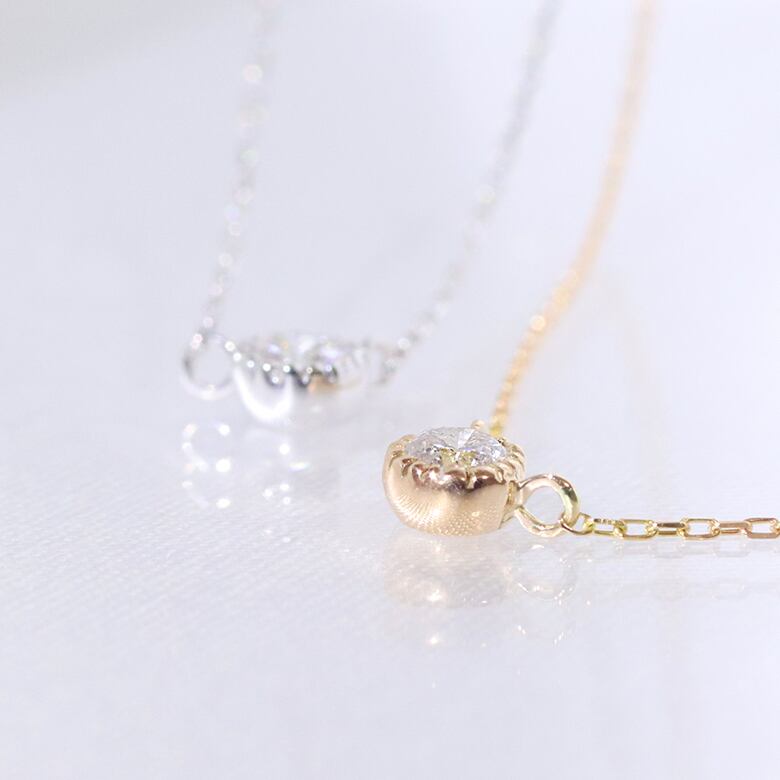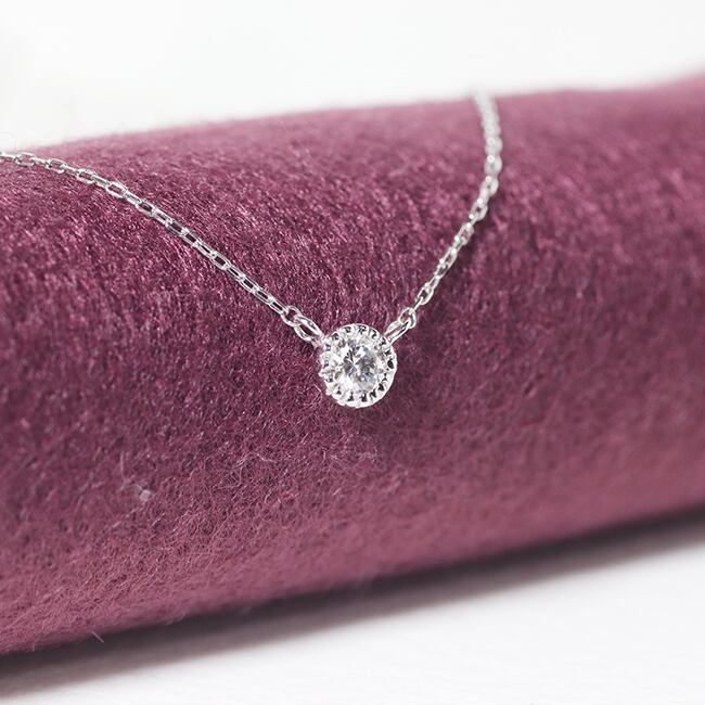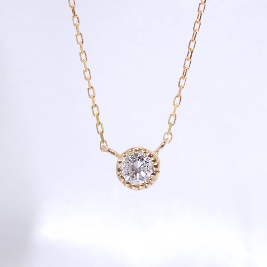 K18 ミル打ち 一粒ダイヤモンド ペンダント