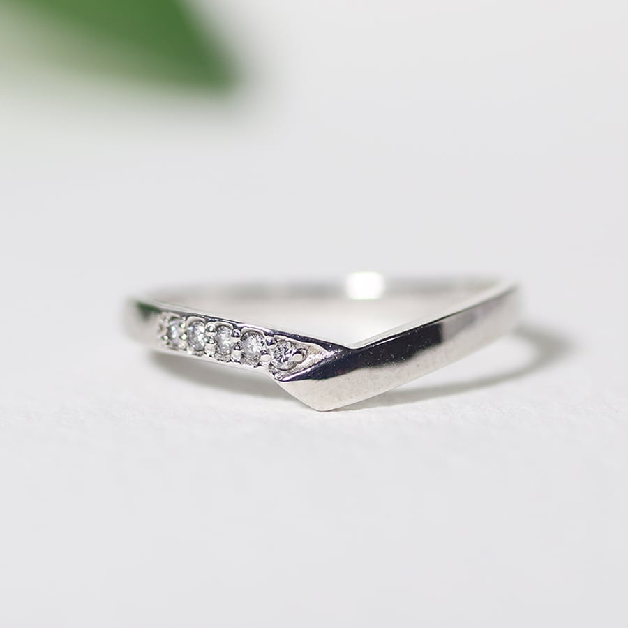 V字の片側だけにダイヤモンドを あしらい、程よいインパクトがありますね