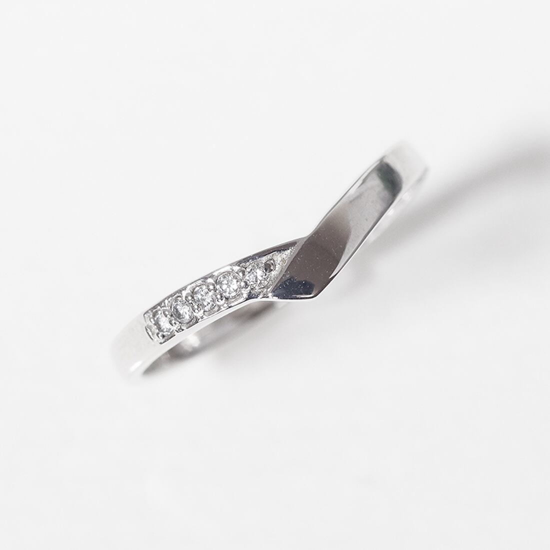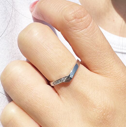 センターのV字 ひねり部分がエレガントでシャープなV字リング
