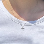 丁度良い長さの華奢なチェーンに揺れる十字架。。